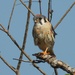 The American kestrel (Falco sparverius) is the smallest and most common falcon in North America. Though it has been called the American sparrowhawk, this common name is a misnomer; the American kestrel is a true falcon, while neither the Eurasian sparrowhawk nor the other species called sparrowhawks are in the Falconidae family, hence only very distantly related to the American kestrel. It has a roughly two-to-one range in size over subspecies and sex, varying in size from about the weight of a blue jay to a mourning dove. It also ranges to South America and is a well-established species that has evolved into 17 subspecies adapted to different environments and habitats throughout the Americas. It exhibits sexual dimorphism in size (females being moderately larger) and plumage, although both sexes have a rufous back with noticeable barring. Its plumage is colorful and attractive, and juveniles are similar in plumage to adults. The American kestrel usually hunts in energy-conserving fashion by perching and scanning the ground for prey to ambush, though it also hunts from the air. It sometimes hovers in the air with rapid wing beats while homing in on prey. Its diet typically consists of grasshoppers and other insects, lizards, mice, and small birds (e.g. sparrows).