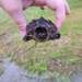 The common snapping turtle (Chelydra serpentina) is a species of large freshwater turtle in the family Chelydridae. Its natural range extends from southeastern Canada, southwest to the edge of the Rocky Mountains, as far east as Nova Scotia and Florida. The present-day Chelydra serpentina population in the Middle Rio Grande suggests that the common snapping turtle has been present in this drainage since at least the seventeenth century and is likely native. The three species of Chelydra and the larger alligator snapping turtles (genus Macrochelys) are the only extant chelydrids, a family now restricted to the Americas. The common snapping turtle, as its name implies, is the most widespread. The common snapping turtle is noted for its combative disposition when out of the water with its powerful beak-like jaws, and highly mobile head and neck (hence the specific epithet serpentina, meaning "snake-like"). In water, it is likely to flee and hide underwater in sediment. The common snapping turtle has a life-history strategy characterized by high and variable mortality of embryos and hatchlings, delayed sexual maturity, extended adult longevity, and iteroparity (repeated reproductive events) with low reproductive success per reproductive event. Females, and presumably also males, in more northern populations mature later (at 15–20 years) and at a larger size than in more southern populations (about 12 years). Lifespan in the wild is poorly known, but long-term mark-recapture data from Algonquin Park in Ontario, Canada, suggest a maximum age over 100 years.