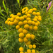 Tansy (Tanacetum vulgare) is a perennial, herbaceous flowering plant in the genus Tanacetum in the aster family, native to temperate Europe and Asia. It has been introduced to other parts of the world, including North America, and in some areas has become invasive. It is also known as common tansy, bitter buttons, cow bitter, or golden buttons. The Latin word vulgare means "common".