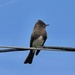 The black phoebe (Sayornis nigricans) is a passerine bird in the tyrant-flycatcher family. It breeds from southwest Oregon and California south through Central and South America. It occurs year-round throughout most of its range and migrates less than the other birds in its genus though its northern populations are partially migratory. Six subspecies are commonly recognized although two are occasionally combined as a separate species, the white-winged phoebe. The black phoebe has predominantly black plumage, with a white belly and undertail coverts. The sexes are identical in color, and juveniles have brown feather tips and brown wing-bars. Its song is a repeated tee-hee, tee ho. It lives in a variety of habitats but is always near water. It is mainly insectivorous and waits on a perch before sallying out and catching its prey in the air. It makes an open cup nest which is placed under a cliff or a bridge and cemented in its place with mud.